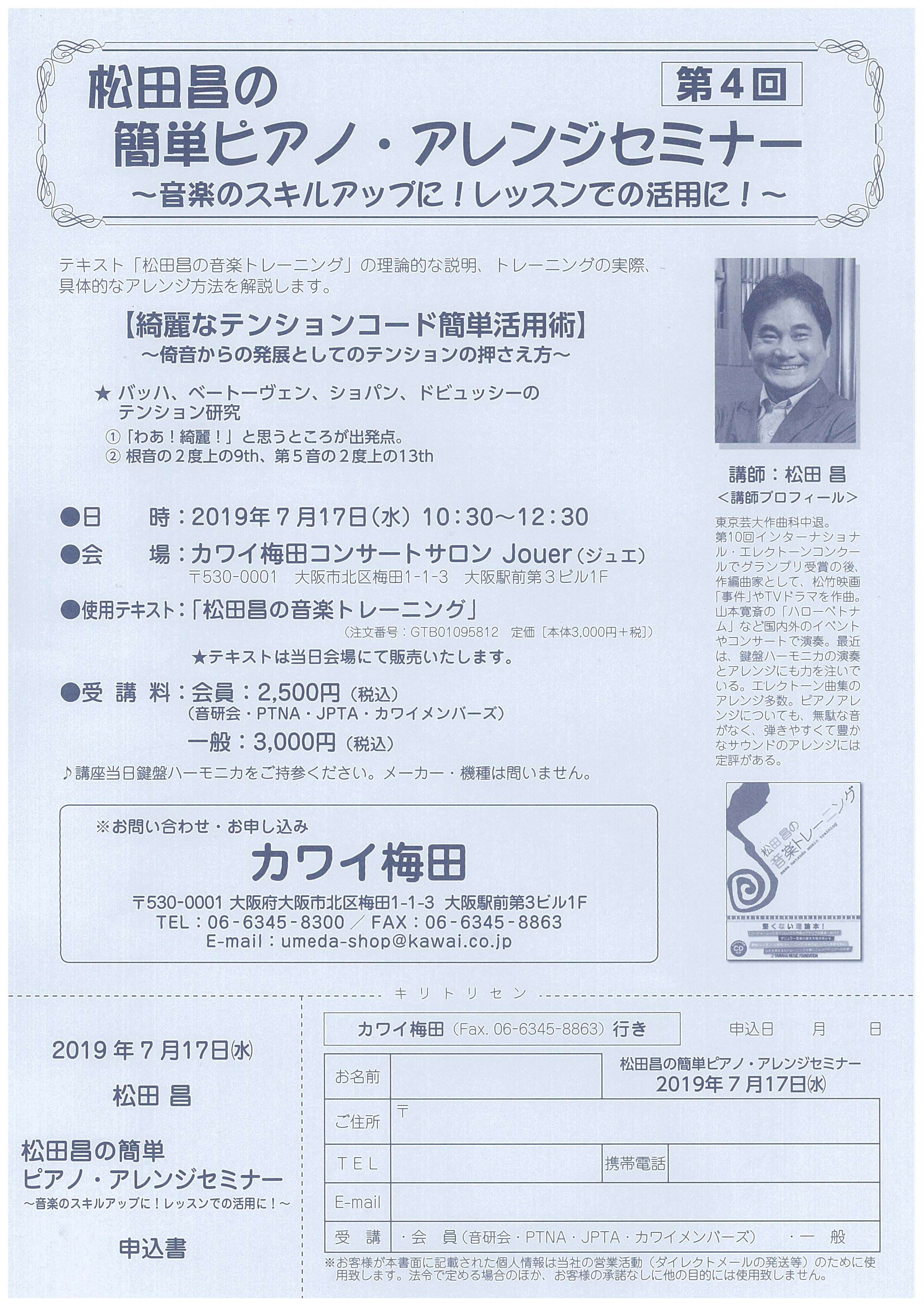 テキスト「松田昌の音楽トレーニング」の理論的な説明、トレーニングの実際、具体的なアレンジ方法を解説します。