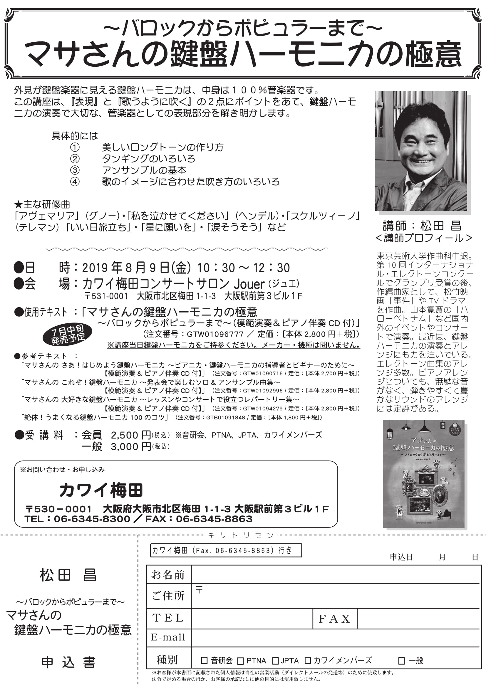 この講座は、『表現』と『歌うように吹く』の2点にポイントをあて、鍵盤ハーモニカの演奏で大切な、管楽器としての表現部分を解き明かします。