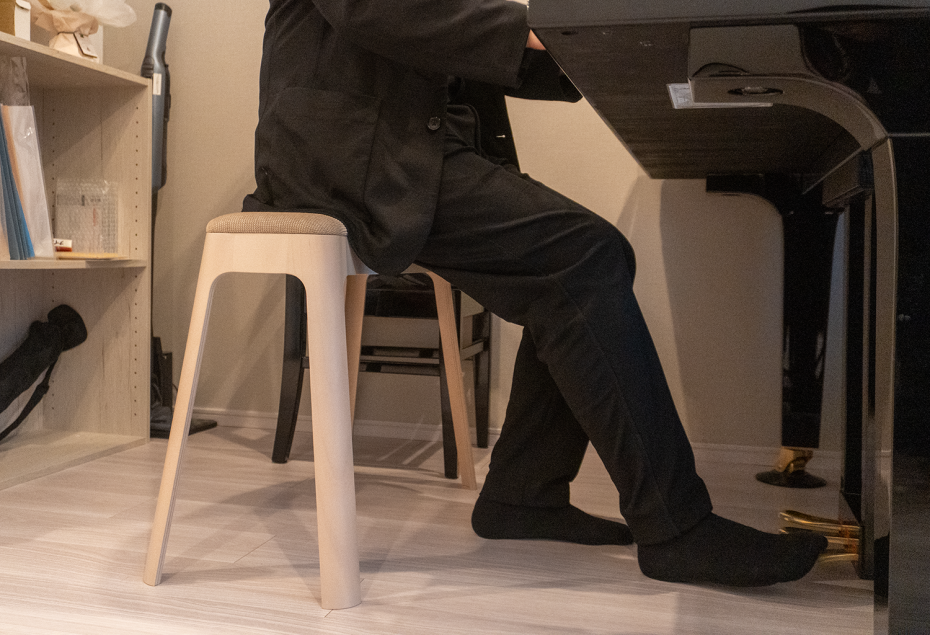 そして、雑音がしないことも、演奏の質を大きく変えました。高さ調整機能がないので調整音が出ることもなく、演奏中に重心を移動しても音が出ない。置くだけで使えるシンプルな構造だからこそ実現できた静けさです。おかげで演奏に集中したい時期でも、椅子の音に気を取られることがなくなりました。雑音によるストレスが完全になくなったのは、想像以上に快適でしたね。