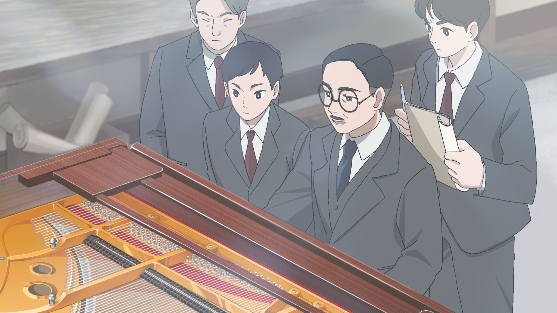 その中で小市が成し遂げたのが、1907年、日本で初めてとなる純国産ピアノアクションの完成です。映像では、木を丁寧に削り、設計図を描き、仲間たちと議論を重ねる姿が印象的に描かれます。それは単なる技術開発ではなく、日本のものづくりの可能性を押し広げる挑戦でもありました。河合小市は、技術者であると同時に、日本のピアノ文化を切り拓いた開拓者でもあったのです。