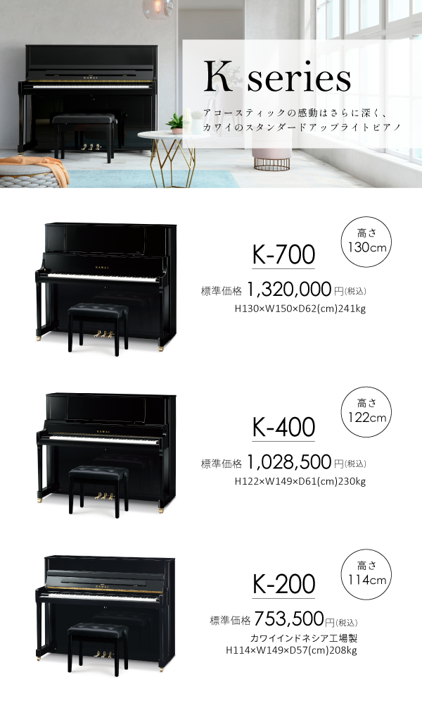 カワイグランドピアノ、カワイアップライトピアノ